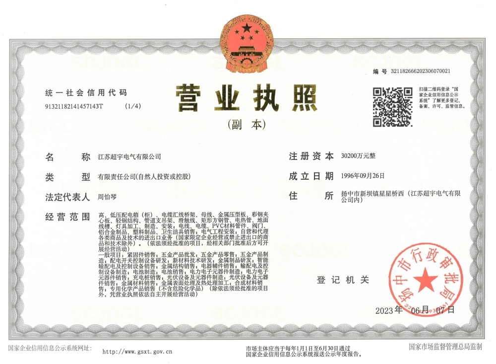 江蘇超宇電氣有限公司地處繁榮富饒的長江金三角,座落在聞名遐邇的生態(tài)示范區(qū)水上花園城市--揚中。公司成立于一九九六年,經(jīng)過二十多年的發(fā)展進步,目前已形成專業(yè)化生產(chǎn)制造規(guī)模。 公司現(xiàn)有注冊資金3.0... ... [詳細>>]